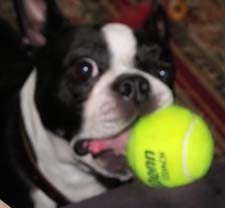 When we got Leroy from his foster parents, they told us that he was afraid of books, magazines, newspapers, and brooms because the previous owners had tormented him with those things. Well, that was certainly true, as he would cower until he got used to the fact that we weren't going to beat him with our reading material or chase him with a broom. The foster parents also told us that Leroy was obsessive about tennis balls…..and they were so right! We've never seen a dog that loved to play ball as much. He was constantly bringing us a tennis ball to throw, and we were always crawling under the furniture to dig one out that he had pushed under. In fact, we had a tennis ball cremated with him.