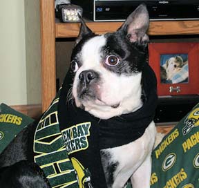 Jeff brought Nitschke home late that night; he was cradled in a box and wrapped in a blanket. The next morning we took him to Pets at Rest in Denmark, Wisconsin, to be cremated. His urn is now in the breakfront with our other Bostons that we’ve lost over the years – Penguin, Pepsi, Pogo, Pluto, and Cagney. It doesn’t seem fair that now we have six dogs in urns and only three living.