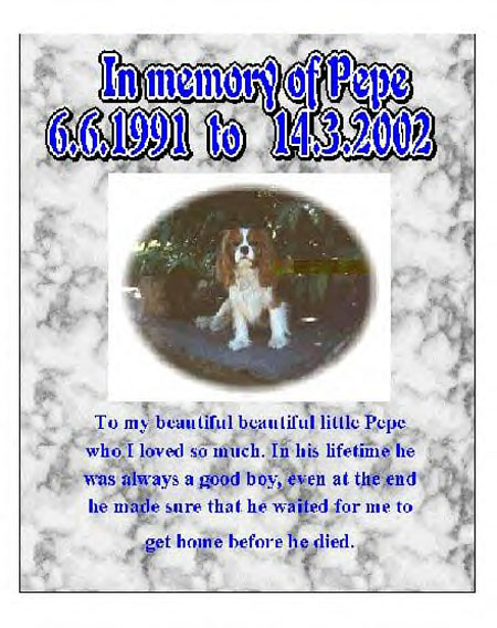 ![]() If lighting this candle would stop my tears I would light a hundred, and dry my eyes If lighting this candle would ease my sorrow I would light a thousand, and smile again If lighting this candle would bring you back I'd light a million, and await your return But lighting a candle won't stop the tears, Won't ease my sorrow, and won't bring you back ... so I won't light a million, a thousand, or even a hundred, I will light just one candle. One candle For one who was unique in my life. One candle because I loved you like no other One candle because there will never be another you One candle for the one who meant everything to me Godspeed, Pepe, from Dolores who loved him so much Until we meet again!